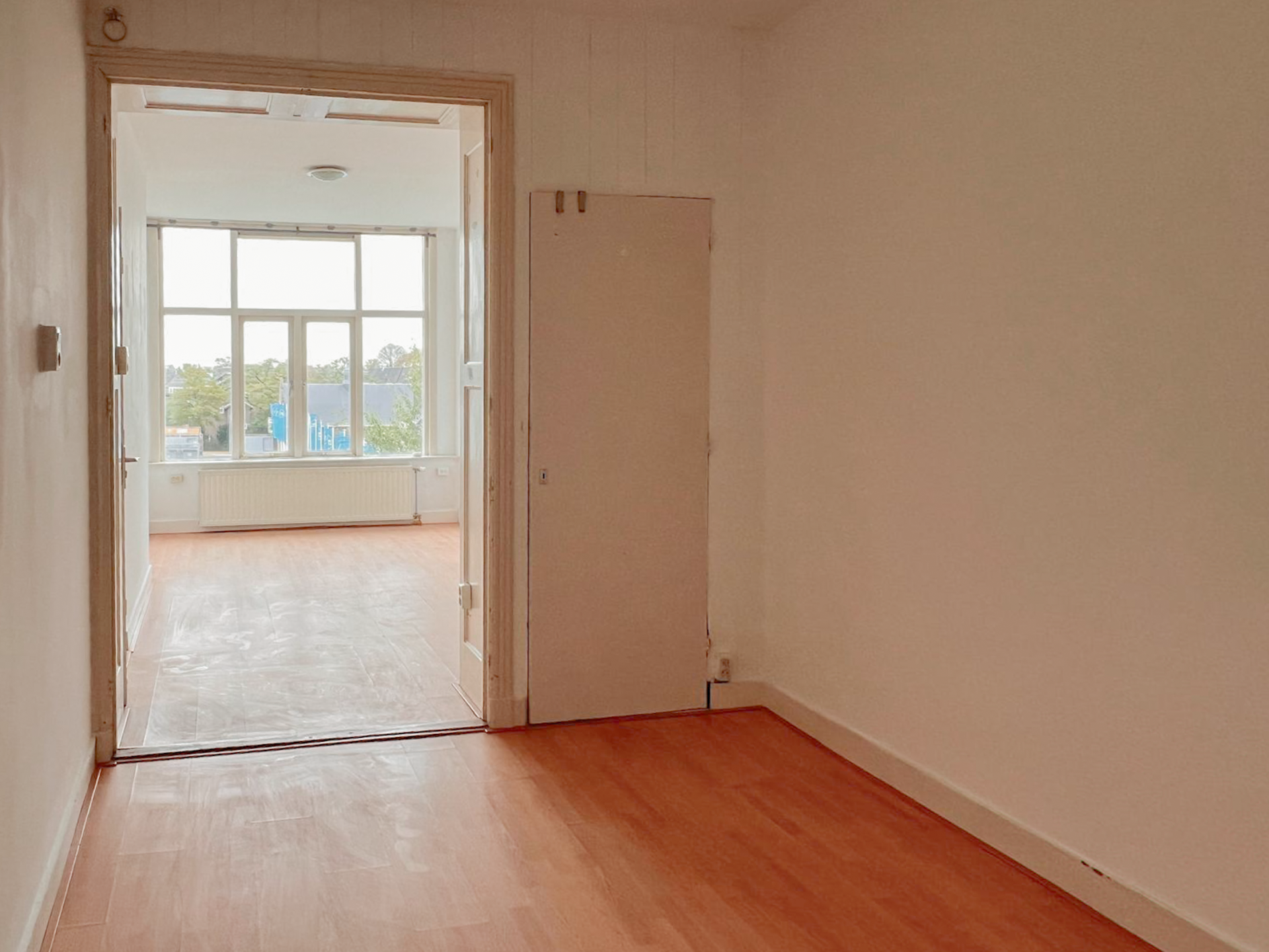 In the center of Kralingen, you can find a nice 6-bedroom apartment. In this apartment, we have one room available. In total there are two bathrooms and two kitchens in the apartment, which means that you have to share the bathroom and kitchen on your floor with two of your roommates.